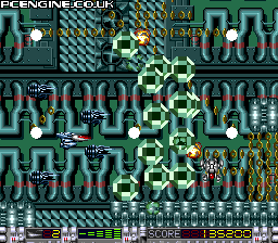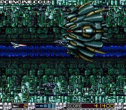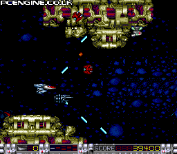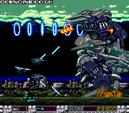 It's the year 2020 and, yet again, the earth has to defend itself against evil forces. So get into your spacecraft and plug some bad guys! One of the few games available for the SuperGrafx, this gives the machine the opportunity to show what it can do with a horizontally scrolling shooter. Gameplay is fairly familiar stuff - the occasional enemy drops an item for you to collect. These can be either speed ups, weapon power increases, gun pods that follow you and can be set to attack enemy craft, or weapon types. The weapons include a forward firing laser, a green ball spread shot and diagonal laser that powers up into a handy 'loop shot' that tracks the scenery above and below.