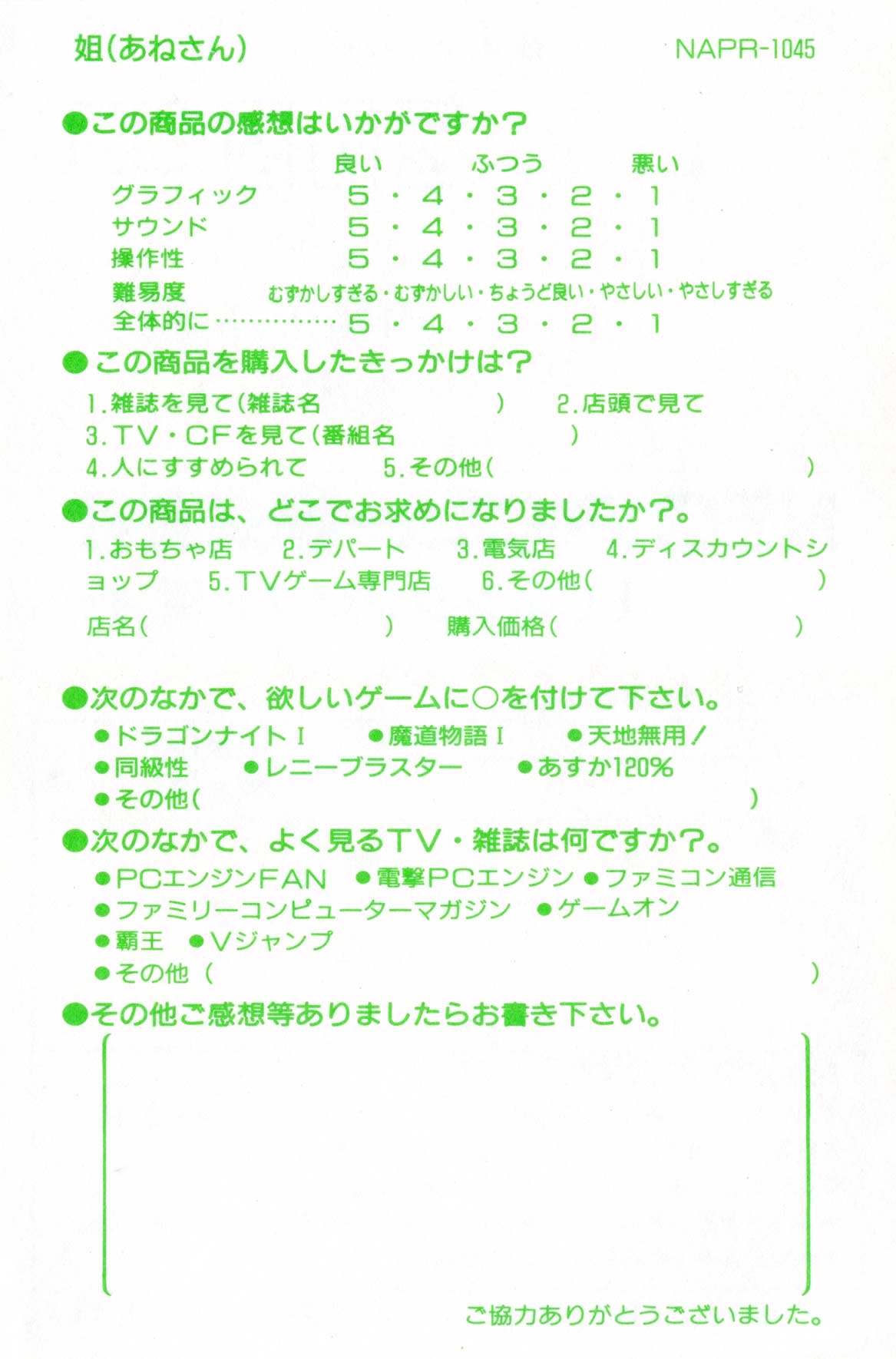 ANE-SAN 姐 (あねさん) MAKER: NEC AVENUE RELEASE DATE: 24 FEBRUARY 1995 STYLE: BEAT 'EM UP FORMAT: SUPER CD-ROM RATING: UNRATED