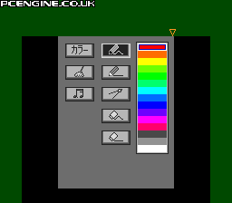 A unique piece of software for the PC Engine, Artist Tool is a graphics program that allows you to draw and print your own artwork when combined with the 'Illust Booster', 'Print Booster' and 'Photo Reader'. The interface has a rudimentary set of tools to choose from, like freehand, straight line and circle, and also a few tunes to listen to while you draw.