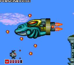 Graphically, Barunba is OK. The backdrops are fairly well drawn, though there are some dodgy enemy sprites. But what mainly lets this game down is the lack of variety and slow pace. Levels are far too long for my liking - you'll probably get bored before you reach the end of level one - and because the limitations of HuCARD, there is little graphical change. If the action was faster or the levels were shorter (like Atomic Robo-Kid) then this would be a far better game. The lack of lives/continues only serves to make things worse. Sonically, it's pretty average too, so no extra points there.
