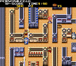 Overview Based on the Kids anime about a robot cat from the future, Doraemon is a sort of Bomber Man in reverse. Instead of planting bombs, you dig holes in the ground to trap enemies then fill them in to finish them off. The game has a couple of difficulty settings, the harder providing more moving enemies to avoid or trap. There is a selection of different levels that alternate for variety (there are 60 levels in total), and the occasional boss thrown in for good measure.