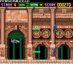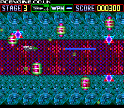 ALTERNATE GRAPHICS: From config mode, go to the DEMO section and watch the ending (9?). When the NEC Avenue logo appears, press UP, SELECT, II then RUN. When the game starts you should see the enemy and some background object replaced by slightly silly things (look out for Ultraman).