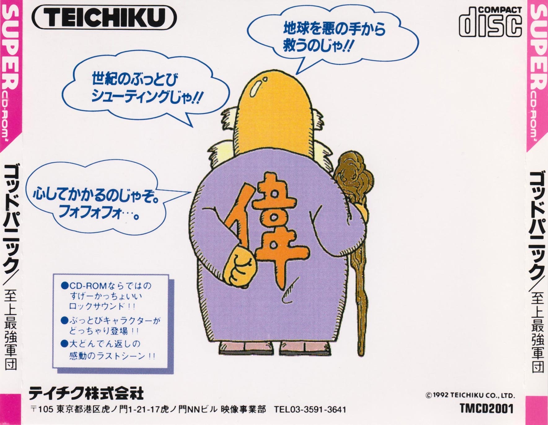 GOD PANIC SHIJŌ SAIKYŌ NO GUNDAN ゴッドパニック 至上最強軍団 MAKER: TEICHIKU RELEASE DATE: 27 NOVEMBER 1992 STYLE: VERTICAL SHOOT 'EM UP FORMAT: SUPER CD-ROM RATING: UNRATED