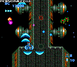 Gunhed, AKA Blazing Lazers was one of the launch titles for the TurboGrafx, and many folks first look at the new console on the block, and what an impression it was. Often grouped with Hudson's Soldier series, the title does share quite a few traits, though it is its own distinct entity. The game is impressive with large bosses, well designed sprites, and an impressive amount going on onscreen with no slowdown. Some of the backgrounds zip along at a fair pace too. This game is a classic, and a clear statement by Hudson of their machines capabilities, featuring a lot of gameplay mechanics they would tweak and refine in later games - but as a first effort, they absolutely nailed it.