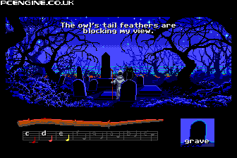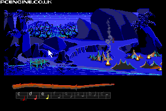Comment Consider this an interactive book where you have to keep a sharp eye out for graphical clues to help you turn the page and get more story. Unlike other point-and-click games where you keep an inventory and try to figure out what to use where, all Bobbin has is a musical staff. Certain items or areas will give you notes in sequence that you must use for action or events (WRITE THEM DOWN). Some songs are only used for their specific purpose, but some can be played backwards to do the opposite, like ‘open’ played backwards is ‘close’. Players must search every nook and cranny and experiment to figure out all the little tricks and things to do.