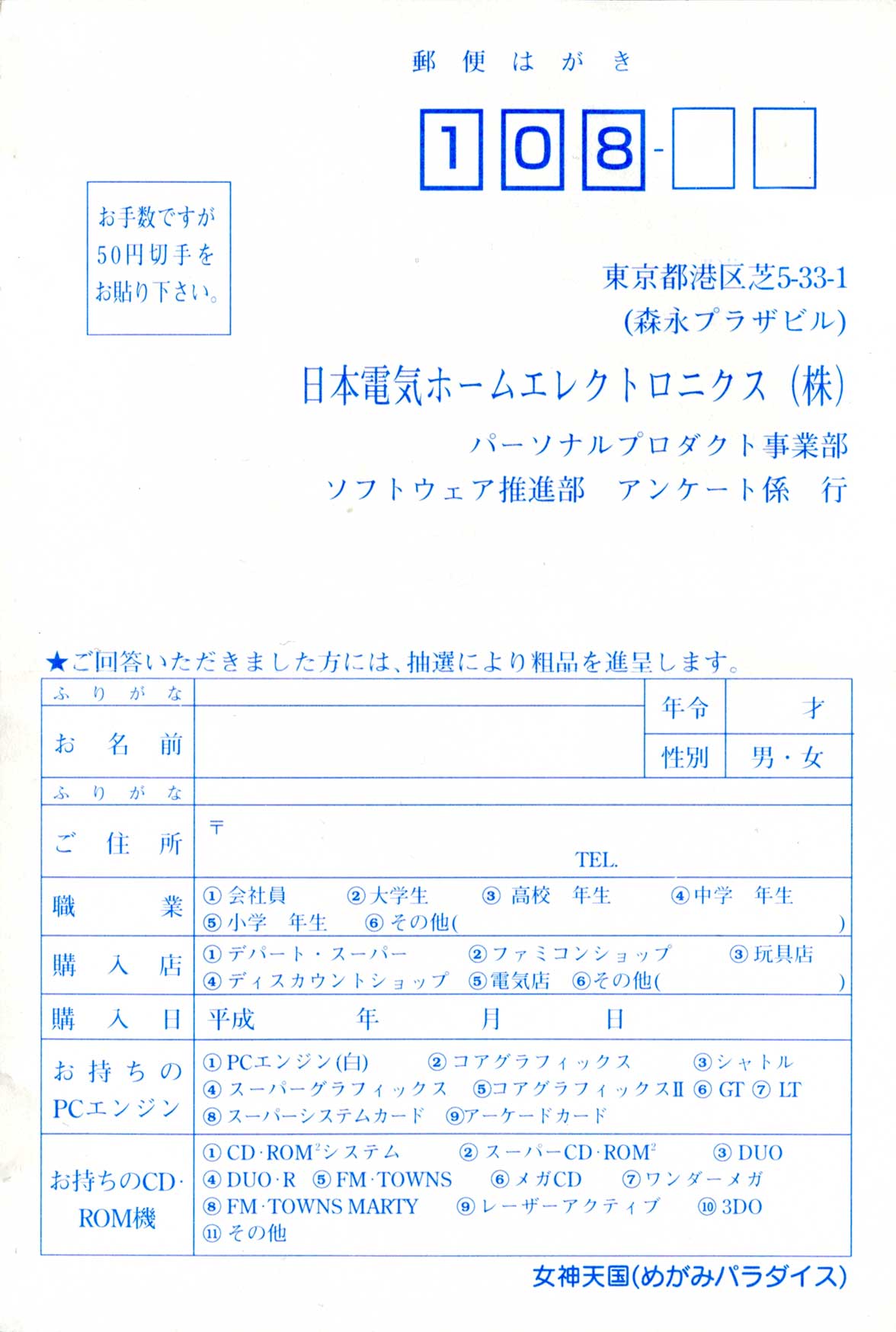 Role-playing game set in a world of only women. Based on a manga series in Dengeki PC Engine that spawned an OAV.