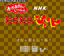 A lot of games look like they are aimed at kids, but can still provide a challenge. Niko Niko Pun is without doubt aimed squarely at the younger gamer. The gameplay is utterly simplistic. You run, jump, duck a bit at a quite sedate pace - there is no life meter to worry about, just the generous time bar. The graphics are actually quite nice - the scenery and sprites are well drawn, and there is enough parallax scrolling to please the eye. The music is a different matter. The tune that is constantly repeated throughout is tinny and fast becomes extremely annoying. By the end of the game you will be reaching for the mute button for sure. You could be mistaken for thinking this is going to provide the same enjoyment as the second Doraemon game, but don't be fooled.