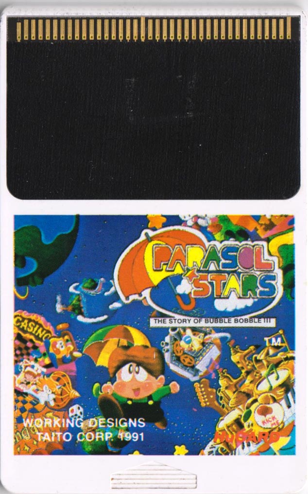 Parasol Stars, the successor to the excellent Rainbow Islands and Bubble Bobble is an action platformer that goes back to its single screen roots. It has an excellent puzzle element, thanks to clever level design, and it features bold colours and big, well designed sprites. To me, these titles were Taito at their peak, somehow making successful arcade games that translated perfectly to home systems. And I think the PC Engine was the perfect system to port them to. The three games (though sadly Bubble Bobble never got ported) were exactly within the PC Engines capabilities, so much so that they could have originated on the system. Though I think Parasol Stars is the weaker of the three games personally, it's an excellent game that will keep you coming back for more. Oh, about the game; you capture enemies by twirling an umbrella at them, then flinging them at their friends.
