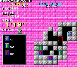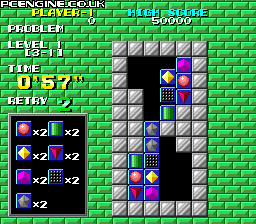 Move the coloured blocks around to match them up. Blocks can only be moved left or right, and can fall down but not move up. Some levels are fiendishly designed and need some careful thought, and all this is against a strict time limit, so don't make a mistake.
