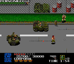 Overhead run-and-shoot game with a Rambo-esque lead character called Guy Kazama.