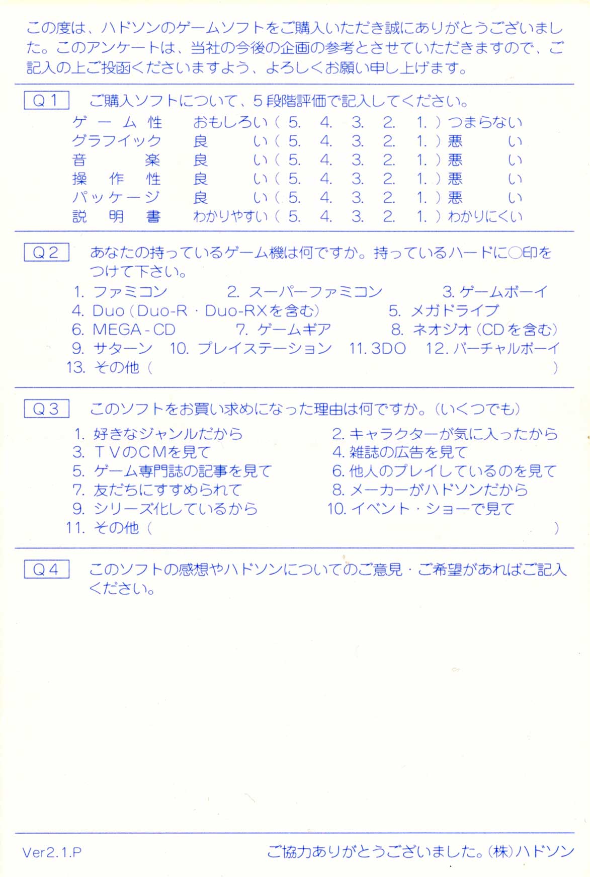 From the first scene of snow falling on the hilltop church, I fell in love with this game. As long as you “read” everything on shelves and talk to everybody, you shouldn’t hit roadblocks. However, there is a wonderful walkthrough site here. All PC Engine/Turbografx fans should rally behind this wonderful title.