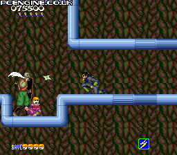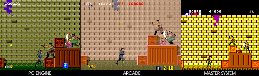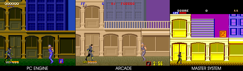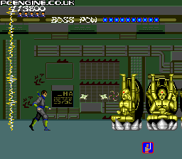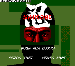 Conversion of Sega's arcade scrolling shuriken ‘em up. Work your way through various missions, dispatching enemies with your throwing stars, or sword at close range. One hit to you is fatal and will send you back to the beginning. This version omits some of the original arcade levels.