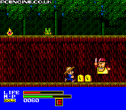 Tatsu no Ko Fighter comes from the Ghouls 'n' Ghosts school of thought - make the game damn hard and frustrating, make the player replay levels over and over until they do it and (thankfully) give them infinite continues so it's not THAT unfair. But while Ghouls 'n' Ghosts is visually interesting and has great music, this isn't and doesn't. Graphics are plain, though not as simplistic as a lot of games of this type and therefore moderately attractive, sound is average with nothing that sticks in your head, but there's something about the difficulty that just puts you off. Most games have a learning curve that starts off very easy then ramps up, but this is pretty tricky from the beginning. After the first few levels, you'll soon be cursing the screen and reaching for the power switch. It almost has a furious addictiveness to it, but not quite - the drive to get further is somehow missing. If you like very hard and annoying platformers, then you could do worse, but most people won't be willing to put the effort in as the rewards are just not there.