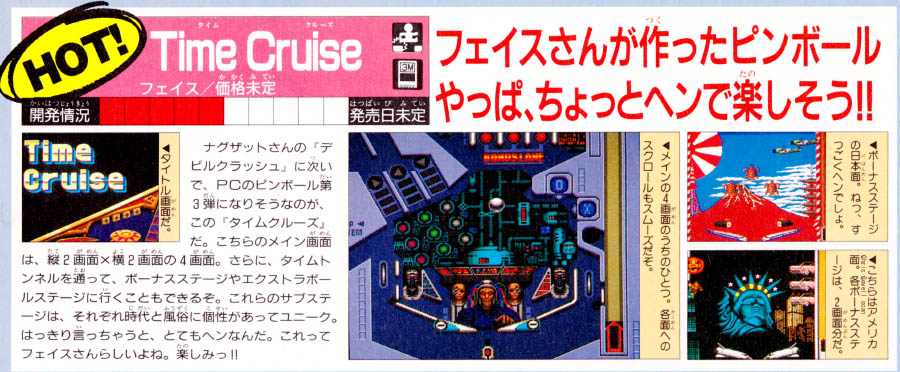 Overview Unreleased pinball game featuring differently themed tables. The name was later used for the US version of Time Cruise II.