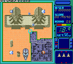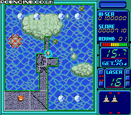 I like the concept of Volfied, but I find that the nature of the game puts an upper limit on how fun it can be. When I first played it, I found myself just rushing to fill the screen and that didn't work out too well. Carefully planning your boxes to get the special pods (in the hope of a time-stopper) while dividing the screen evenly soon became the most productive strategy. Volfied's difficulty is its stumbling block though. Once you get above level 6 or 7, it really becomes a problem to avoid the 'boss' craft and minions which almost seems to track you around the screen. This can cause long-term frustration with the game and puts into question its longevity - a password system would have worked wonders. But it can be fun in short bursts if you want something to play for a few minutes at a time.