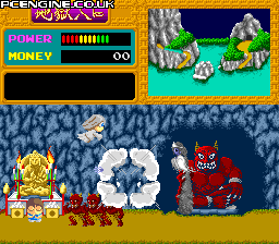 Cute and demonic platform game. With only a yo-yo like energy weapon to protect you (that can be powered up by holding down on the control pad), you must navigate the spooky and monster-filled levels, stopping occasionally at a shop or gambling parlour.
