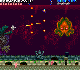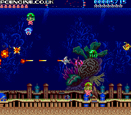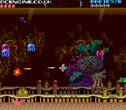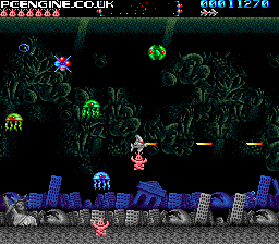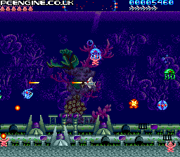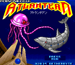 Atlantean is a Defender style shooter set on an underwater planet. You have to defend the Atlanteans against the evil robot horde who attack in a series of waves. Some of the enemies will capture the Atlanteans and bring them to the surface, mutating them into bio-mechanical hybrids, but shooting the ships before they transform will release the prisoner. You then have to grab them and escort them to the safety of the ocean floor. If you let too many Atlanteans die or be transformed, Atlantis is destroyed and it's game over. There are several stages in Atlantean, set over four levels. These include the standard shooting levels, minefields, bosses and bonus levels where you need to catch as many falling Atlanteans as possible to help repopulate.