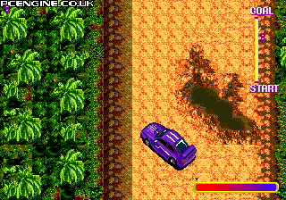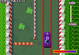 Overhead driving game where you have to reach the end of the course while avoiding spikes, holes, barriers and other obstacles
