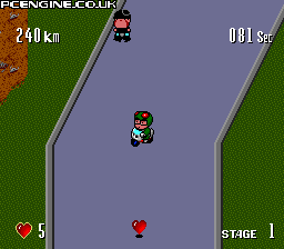 Kamen Victor: a fast-paced rollercoaster of a game not seen since the days of the Vic 20. This little beauty has you running left to right, punching and kicking the enemies as they leap at you, throwing shurikens. You don't even have to push a button to attack, your fist or foot is always sticking out so all you need to do is make contact from the front. Once you defeat the required number of enemies (shown top right - any you miss are added again to the counter) then you reach the boss stage. Here you have to push the buttons as displayed on screen to transform and take him down for good. As you can see from the video, I'm a bit rubbish. It's very, very basic, but on the upside, it does have more parallax scrolling that CD Denjin. So take that Hudson Soft.