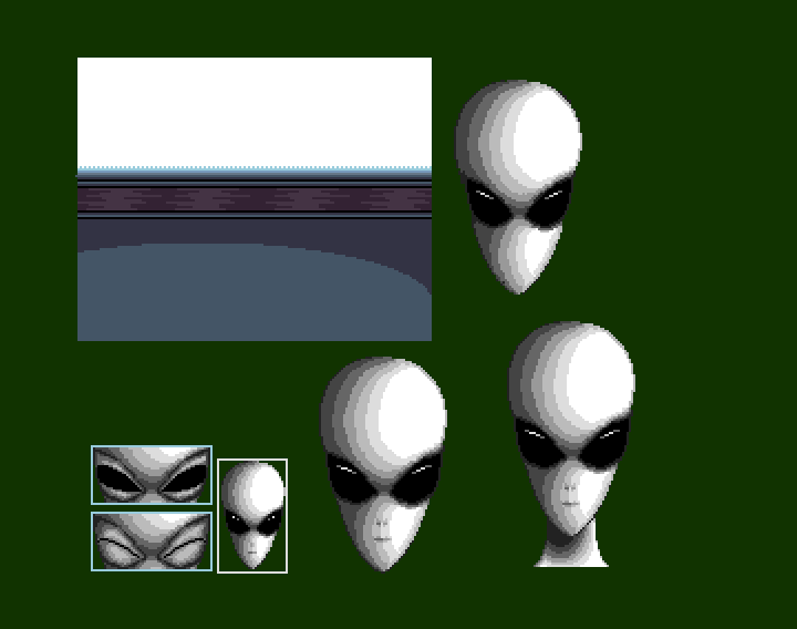 At one point, we had this whole alien 'Greys' plot thing that we wanted to incorporate. That fell by the wayside, but we still used the EBE head as a loading screen.