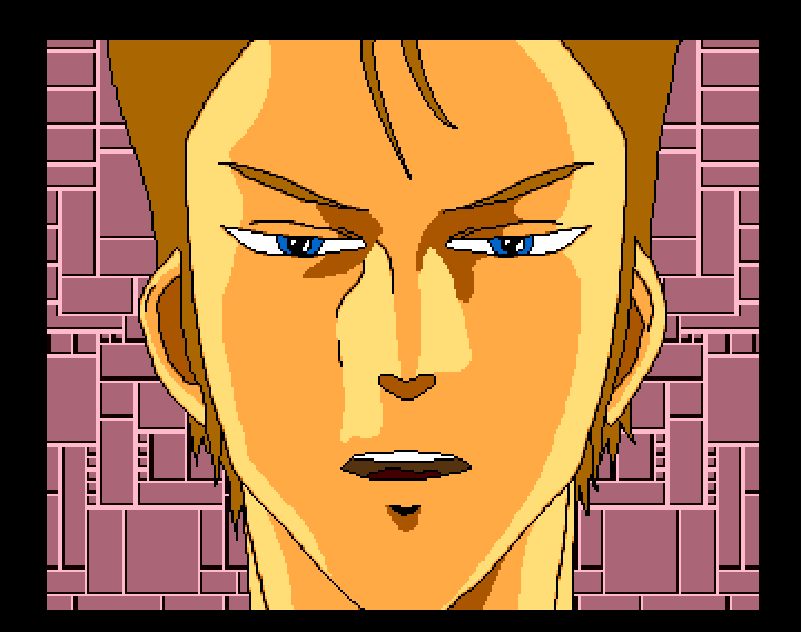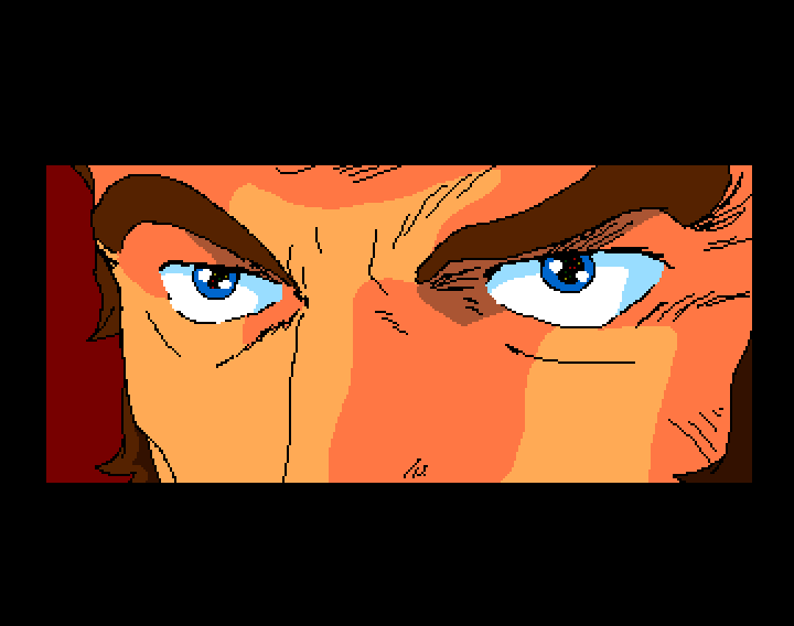 The newly planned opening sequence, retaining the flashing kanji from the arcade.