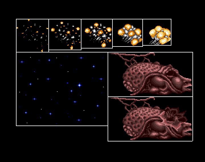 After we abandoned the shooting levels, the brain boss became an animation. We just had to include it because it looks cool.