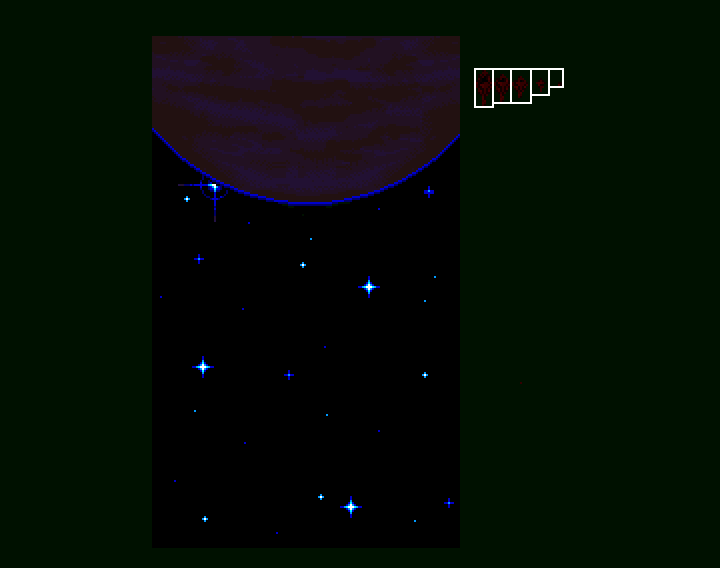 The first ending sequence, which then leads on to some bonus levels as the player crashes on an alien world.