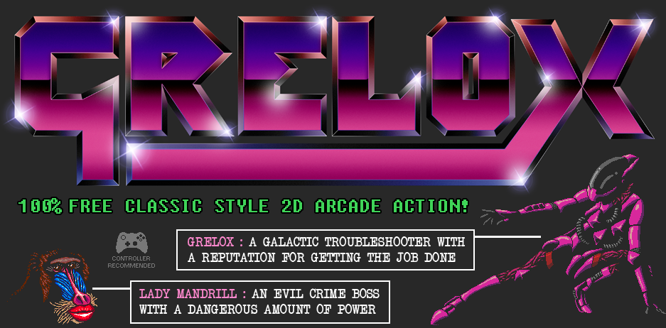 Famed galactic troubleshooter Grelox is out on a contract to the distant planet of Aeon. There have been rumours that the crime boss, Lady Mandrill, has been tunnelling into the planet in search of something ancient and dangerous. Spurred on by a desire for justice and a very large payout, Grelox guns her engines and lands on the planet to explore...