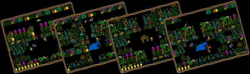 Alone in the jungle, you must find the four parts of the amulet to allow passage past the gatekeeper and escape.