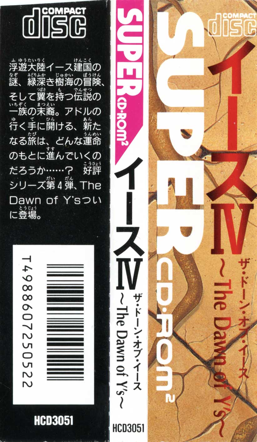 More a true sequel to Ys I & II, rather than Ys III, this reverts back to the same overhead style with the familiar bump-the-enemies attack system. Ys IV takes Adol to new lands and locations, but also back to places such as Minea and Darm Tower. Ys fans will be glad to know the music is again arranged by Ryo Yonemitsu.