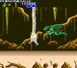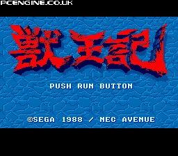 The CD version of Altered Beast is a curious thing. It sports one of the cheapest visual scenes you've seen, masquerading as a 'story' but consisting of enlarged graphics from the game and a few digitized images from existing artwork, all with a nicely blocky border. This holds one hope - it uses the original arcade music behind some voice overs. However, when you enter the game, the arcade music is gone to be replaced with the standard chip music straight off the card version (with the exception of the 'game over' and 'level complete' jingle). Visually there is little difference between this and the HuCard, except the colour palette has been altered slightly. There are also speech samples from the arcade which add to the authenticity a bit. But what the CD version does have is the option for 'normal' and 'hard'. Considering the card version seems to be permanently on hard, this makes the game a tad easier to play and slightly more enjoyable too as the collision detection is more generous to the player. Sure, it's an appalling waste of the CD format, but I would just put this ahead of the card version if I had to make a choice of purchase. Be warned, it only works when using a System Card v1.0.