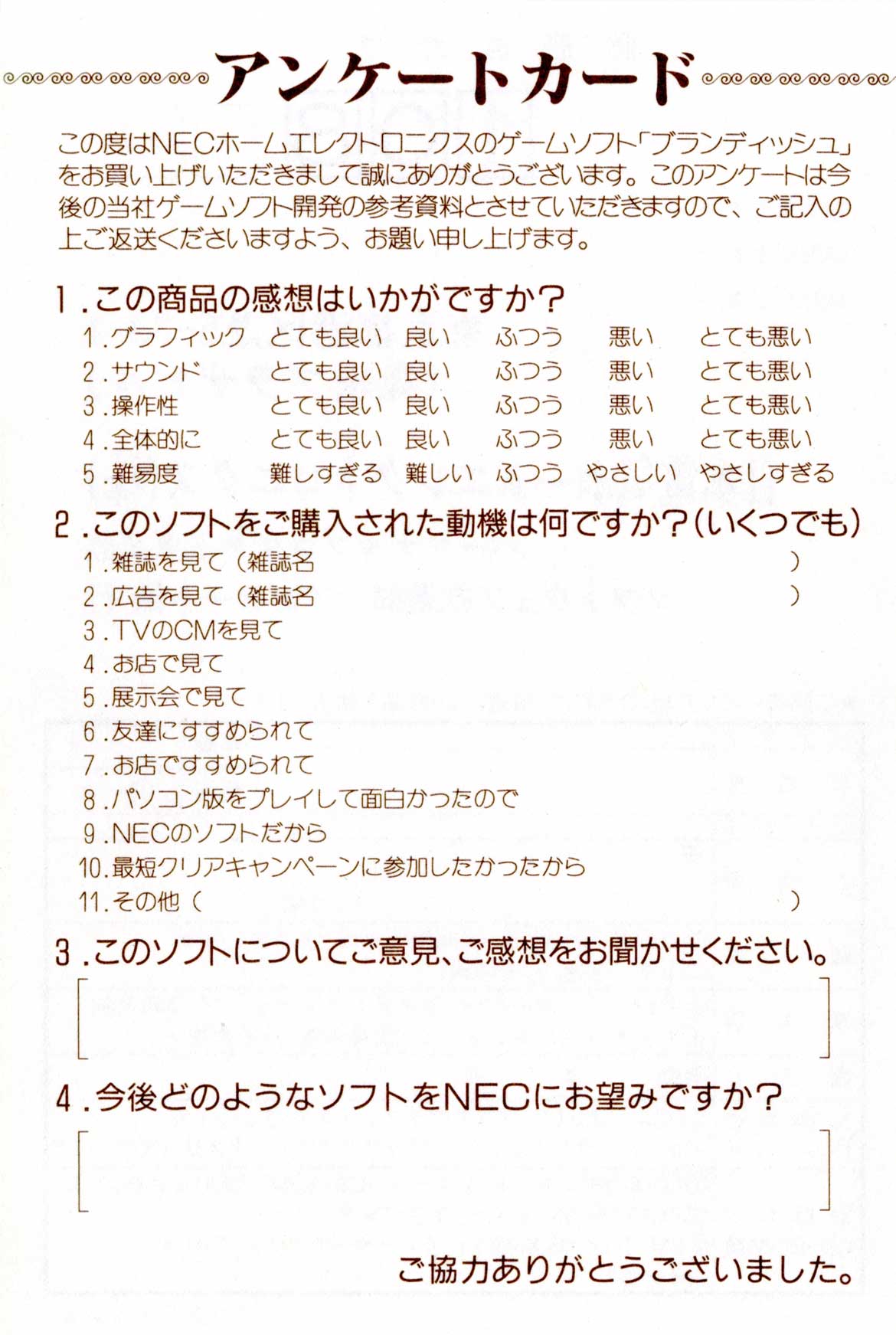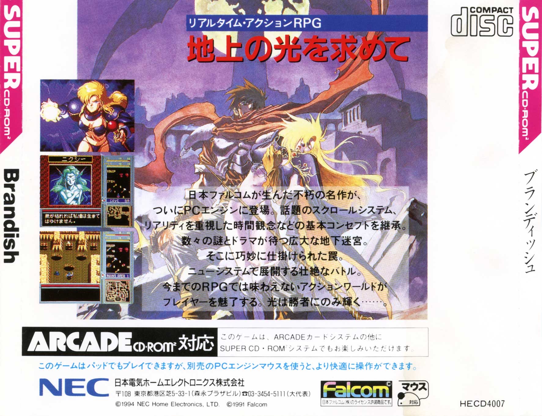 BRANDISH ブランディッシュ MAKER: NEC HOME ELECTRONICS / FALCOM RELEASE DATE: 17 JUNE 1994 STYLE: ACTION ROLE-PLAYING FORMAT: SUPER CD-ROM / ARCADE CARD CD-ROM RATING: