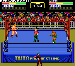 Take to the ring with one of eight characters - push, kick, rebound and trample your opponent in this muscle-bound wrestling title from Taito.