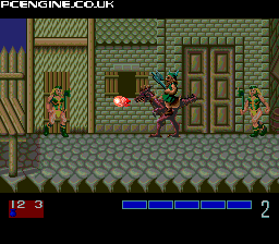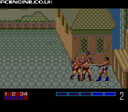 What the hell have they done with this? Golden Axe was one of my most frequently played arcade games in its time and the Mega Drive version was a joy. This, however, is a travesty. The PC Engine is more than capable of a great conversion, but in steps Reno/Telenet and makes a complete dog's breakfast of the whole thing. Firstly, the visuals are awful. Basic backdrops and poorly drawn and coloured sprites resemble the arcade, but not nearly enough. Animation is sloppy, and character movement is ugly and cumbersome. The magic effects are also half of what they should have been. And fans of the original will be shocked by the corners they have cut with the gameplay also - gone are the position specific attacks. No more throwing your enemies or bashing them over the head with your sword hilt - these are the things that made Golden Axe fun! The music is also for the most part very badly arranged, with the cheapest synth sounds being used that do nothing to evoke the spirit of the original. But the icing on the cake is the sound effects, which prove once and for all the programmers have no clue what to do with the hardware - the sword slashing sounds like a duck quacking, and some of the magic spell sounds will make your ears bleed. Some may think that the extensive animated sequences that introduce each character are a big plus point to the game, but to me they only show where all the budget went, which was certainly not on the game itself. It's no wonder that NEC Avenue took over most of the Sega conversions after this sloppy piece of work. If you're not familiar with Golden Axe then you may get some small enjoyment from this game, but for me, just knowing what it could have been like frustrates me all the more every time I force myself to play it.