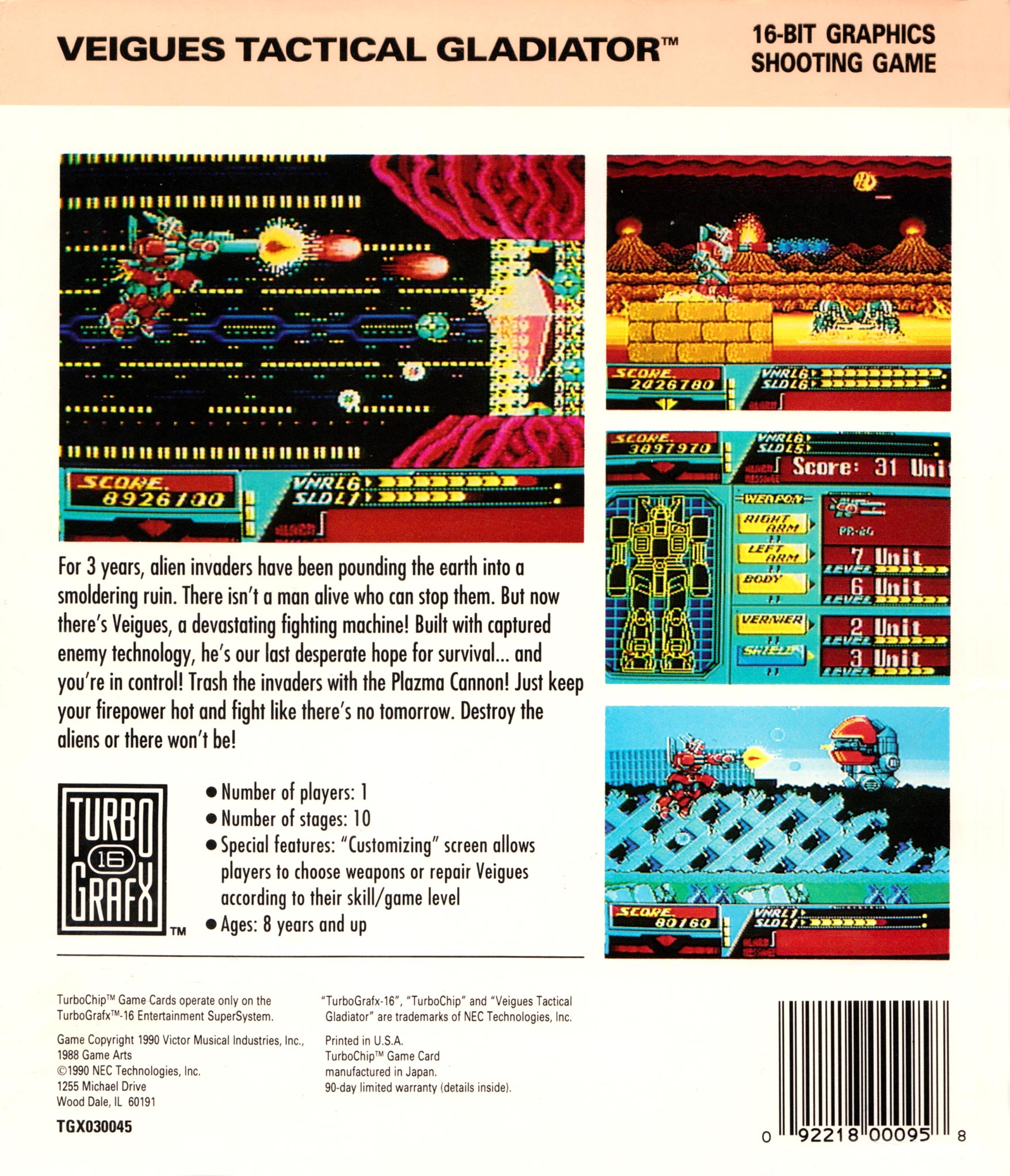 VEIGUES TACTICAL GLADIATOR ヴェイグス TACTICAL GLADIATOR MAKER: VICTOR MUSICAL INDUSTRIES / GAME ARTS RELEASE DATE: 29 JUNE 1990 / 1990 STYLE: ACTION FORMAT: HUCARD RATING: UNRATED